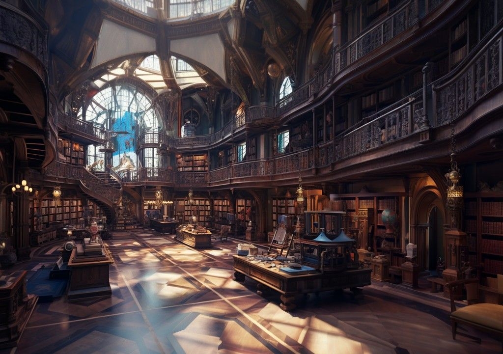 Внешне это высокое здание с широкими окнами в готическом стиле и несколькими полу-декоративными башенками. Широкие окна обеспечивают достаточный свет для постижения книг. В библиотеке несколько больших светлых залов. В часть из них пускают далеко не всех. Кроме того, ходят слухи, что в библиотеке множество подземных залов. За безопасностью внутри следит гвардия а сохранность книг обеспечивает персонал и Слушатели. Работать здесь считается весьма престижным, поэтому нехватки в людях библиотека не испытывает. Внешние башни используются в основном как архивы или подсобные помещения – мало кто захочет топать по винтовой лестнице наверх и обратно. Так же в библиотеке есть небольшой зимний сад, где так же можно посидеть и почитать под пение редких птиц и работает небольшой буфет.
